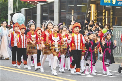 在文化节活动中,五指山黎苗童声合唱团身着色彩斑斓的黎族苗族传统服饰,与来自巴西、蒙古国等国家以及韩国各道市地区的艺术团队共同参加巡游,并以悦耳动听的歌声唱响《久久不见久久见》等黎族歌曲,吸引了众多游客的目光,成为文化节上一道亮丽的风景线。