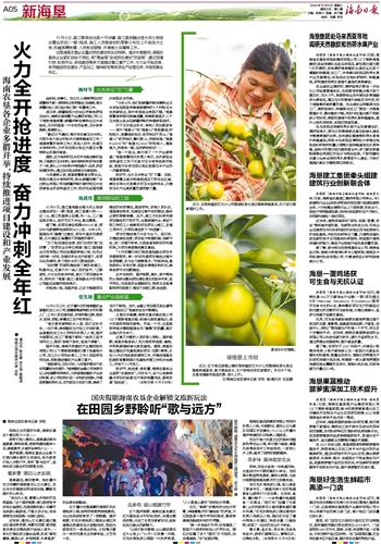 抓时节、抢进度、保质量,海南农垦各企业坚持“农垦姓农”,开足马力,全力以赴确保重点项目和经营生产保质保量完成,奏响发展“奋进曲”。(本报石碌10月8日电)
