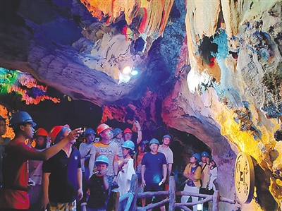 国庆假期,游客在石花水洞地质公园游览。何文新 摄