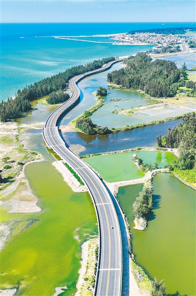 ■ 蒲喜雄海南环岛旅游公路全长约988公里,贯穿海口、文昌、琼海等沿海12个市县。自开通以来,海南环岛旅游公路吸引了众多流量,也带来了沿线新业态、新产业、新发展,当以此为契机,大力发展路衍经济,进一步促进沿线地区旅游资源开发和经济社会发展。