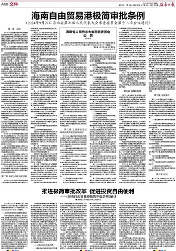 第三条 海南自由贸易港推行极简审批,遵循精简、统一、诚信、效能、便民、公开的原则,深入推动审批服务提质增效,在更多领域更大范围实现“高效办成一件事”。