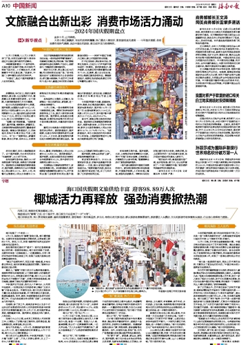 一些外媒也捕捉到中国假日消费的活力。新加坡《海峡时报》网站报道称,中国国庆假期,人们纷纷涌入餐馆、商场和旅游景点。菲律宾《马尼拉时报》援引有关分析称,消费反弹,加上近期发布的一系列促增长政策,将为促进中国经济发展注入新动力。