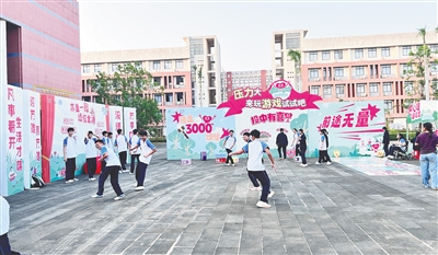 学生们在活动现场玩减压游戏。海南日报全媒体见习记者 王洪旭 摄