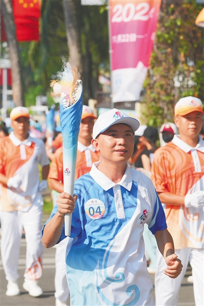 第四棒火炬手符其荣在传递火炬。海南日报全媒体记者 王程龙 摄