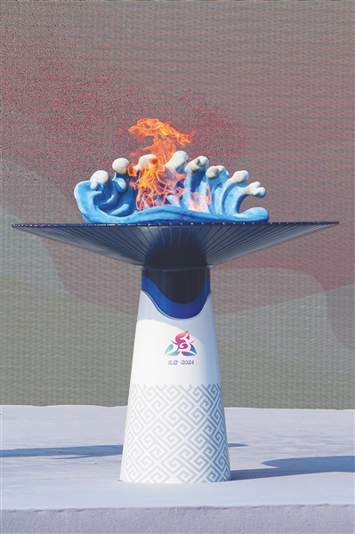 第十二届全国少数民族传统体育运动会火种盆。海南日报全媒体记者 王程龙 摄