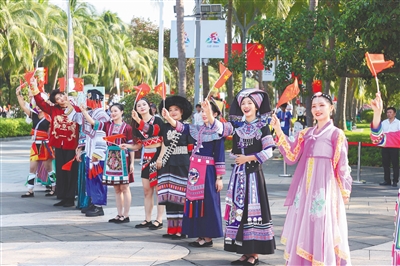 10月9日上午,《爱我中华》的歌声从三亚天涯海角悠扬传出,各族儿女载歌载舞,迎接分别代表着人与自然和谐共处的“生态之火”、代表新质生产力的“科技之火”、代表生命力的“希望之火”。