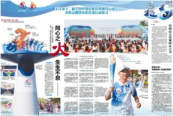 “‘同心之火’的汇聚寓意各民族在中华民族大家庭中像石榴籽一样紧紧抱在一起,共同推进中华民族共同体建设,同心共圆中华民族伟大复兴的中国梦。”运动会执委会有关负责人说,新时代新征程,推进中国式现代化、实现全体人民共同富裕,一个民族都不能少,大家应当团结携手、同心同德,一起向未来。