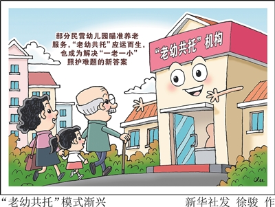 一处设计温馨的现代化园区内,在孩童的欢声笑语中,老人们聊天、散步,怡然自得……像这样“一老一小”和谐共处的“老幼共托”新场景,在一些城市越来越多。当前,不少幼儿园遭遇“入园难”变“招生荒”的经营困境。部分民营幼儿园瞄准养老服务,“老本行”和“新趋势”一起抓,“老幼共托”应运而生,也成为解决“一老一小”照护难题的新答案。