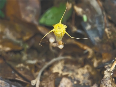 通体金黄,形如中国古代的金色酒樽,从枯枝腐叶里破土而出,像一盏盏“黄灯笼”。这是科研团队近期在海南热带雨林国家公园尖峰岭片区发现的新物种——金樽水玉杯。