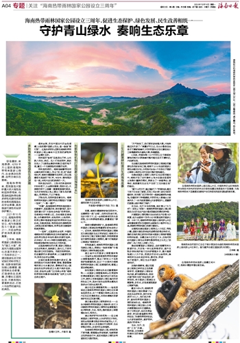 三年来,海南将国家公园建设视为“国之大者”,将其列为海南全面深化改革开放的12个先导项目之一,建设国家生态文明试验区的标志性工程,创新体制机制加强公园管理,推进雨林生态修复,打造绿色生态屏障,改善社区居民生活,开展各类科普宣教活动,打造人与自然和谐共生的典范。