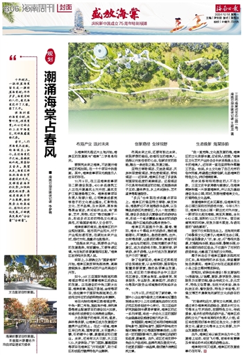 和余贤栋有相同想法的人不在少数。三亚文史专家周德光曾建议,在海棠湾畔种植一片琼崖海棠林,并以此为基础建设生态公园;同时,发掘传播海棠文化,打造特色文化品牌。