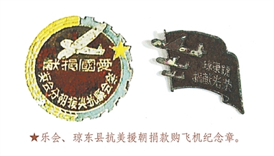 1951年乐会、琼东县抗美援朝捐款购飞机纪念章。资料图