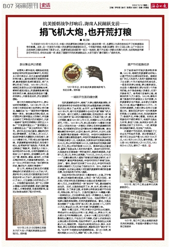 崖县(今属三亚市,下同)水南乡大旦村妇女纪道年,带领全村50余名妇女开荒11亩,养猪2头,养鸡25只,将大部分生产所得捐献出来。过岭乡(今属三亚市天涯区)黎族妇女董亚文,不但自己尽力捐献,还耐心劝说其他妇女捐出部分劳动所得,在她的带领下,全乡黎族妇女共捐款470元,难能可贵。在经济比较落后的白沙、陵水、乐东等县,群众也积极参与捐献活动,筹款购买的“陵水号”大炮、“乐东号”大炮被运往抗美援朝前线。至1951年底,海南共捐款263.84万元,捐献飞机12架、大炮6门。