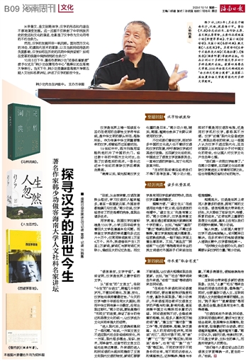 10月8日下午,著名作家韩少功“终身名誉教授”授予仪式及“韩少功创意写作中心”揭牌仪式在海南大学举行。当天下午,韩少功受邀做客海南大学第五期人文社科名家讲坛,讲述了汉字的前世今生。