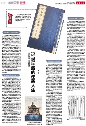 ■ 杨树《琼台诗文会稿》是明朝海南大儒丘濬的诗文著作总集,共收入诗词约900首,文章380余篇。透过此文集,可窥见明代“文臣之宗”丘濬的传奇人生。