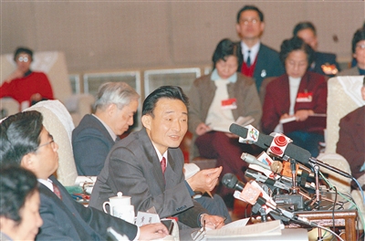 1994年3月,时任上海市委书记的吴邦国同志在全国两会上海代表团全团会议上。