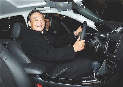 2010年1月30日,吴邦国同志在上海汽车集团股份有限公司技术中心察看新能源样车。新华社记者