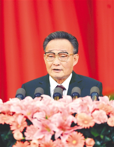 二〇一一年三月十日,十一届全国人大四次会议在北京人民大会堂举行第二次全体会议。吴邦国同志作全国人民代表大会常务委员会工作报告。新华社记者 谢环驰 摄