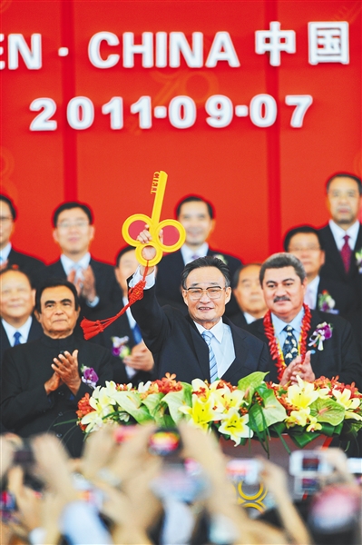 二〇一一年九月七日,吴邦国同志在福建厦门出席第十五届中国国际投资贸易洽谈会开馆式。