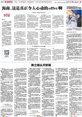 回顾过去几年,海南已多次到内地举办校招活动,广泛招揽自贸港发展所需的各类人才。今年的校招活动,由省领导带队、“线上+线下”联动、近600家单位提供1.4万余个岗位,进一步释放了聚四方之才、共建自贸港的强烈信号。