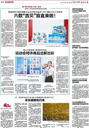 运动会指挥部有关负责人表示,特许商品“吉贝”潮玩手办产品通过生动形象的设计,展示各民族运动员奋勇拼搏的精神风貌,体现民族文化的多彩交融,彰显海南自贸港高质量发展新气象。