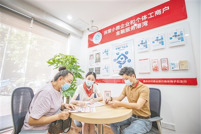重庆农村商业银行工作人员为商户介绍贷款产品。