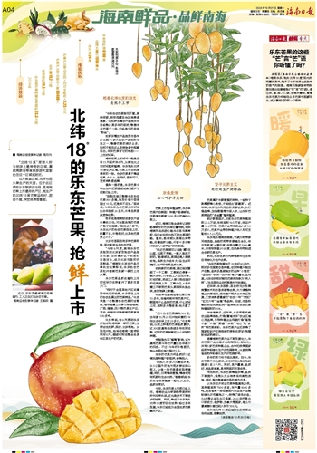 本报讯(海南日报全媒体记者周钰)海南乐东,地处北纬18度,阳光和雨露的恩泽,赋予了乐东芒果出类拔萃的香气和甜度。海南日报新媒体特别策划推出创意海报《“芒”言“芒”语》,通过早、暖、甜、巧、绿、优等关键词,看看乐东芒果为何能在众多芒果中脱颖而出,成为最惦记的那一口香甜。