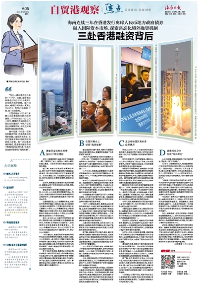 境外发债,不仅是一项有效的融资手段,还是海南自贸港积极融入国际资本市场、主动对接国际高标准经贸规则的有力举措。每一次赴港发债的背后,是海南向国际市场不断释放的投资机遇,也是在创造更多新鲜的“海南故事”。