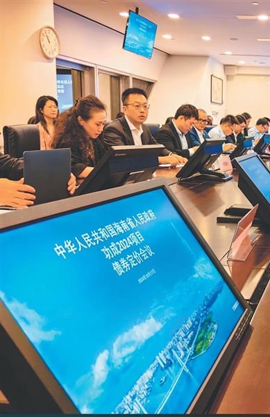 海南省二〇二四年离岸人民币地方政府债券定价会议现场。本版图片除署名外均为海南日报全媒体记者 陈彬 摄
