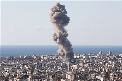 10月19日,黎巴嫩首都贝鲁特遭以色列空袭后升起浓烟。新华社发