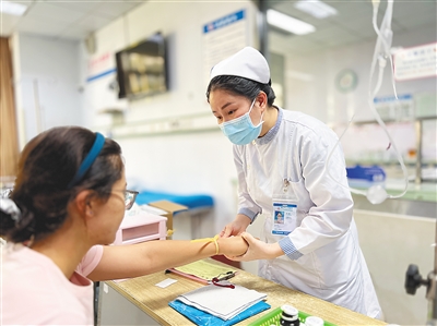 符小惠介绍,采用飞针技法,关键在于速度、准确性和稳定性,确保一次性穿透皮肤直达血管,进而大幅缩减针尖滞留肌肤内部的时间,达到减轻疼痛的目的。“九成以上的患者均适宜采用飞针疗法,往往能在眨眼间完成任务。”不过,她亦强调,针对10岁以下儿童、血管特别纤细或处于危重状态的病患,则需采取更为温和缓慢的方法,以免造成不必要的风险。