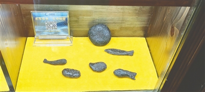 科普馆内展出的陨石组合作品《年年有鱼,吉祥如意》。