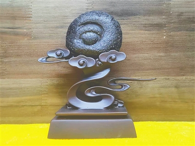 杨安雄收藏的阿根廷铁陨石《外星人》在海南儋州“东坡杯”石展评比活动中获金奖。