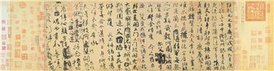 颜真卿的行书深得王羲之书法神髓,遗貌取神,又融入自家楷书雄浑之意,遂另辟蹊径,开一代新风,郁勃沉雄。其最著名的行书有《祭侄文稿》《刘中使帖》《争座位帖》《送裴将军诗帖》等。