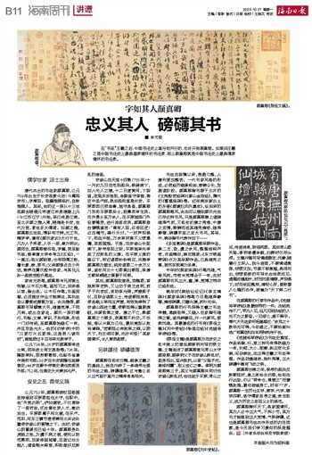 颜真卿胸怀天下,具家国情怀,其为人必中正大气,不拘小节,其为书才能做到正大宽博、气势磅礴,这也是颜真卿书法杰作形成的内在因素,是今天我们学习景仰的深层理由。(作者系琼台师范学院教授)