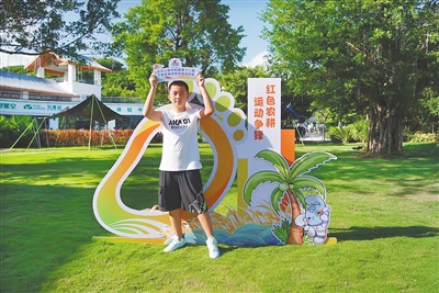 游客手持运动会宣传卡牌拍照留念。通讯员 陈晓旅 摄