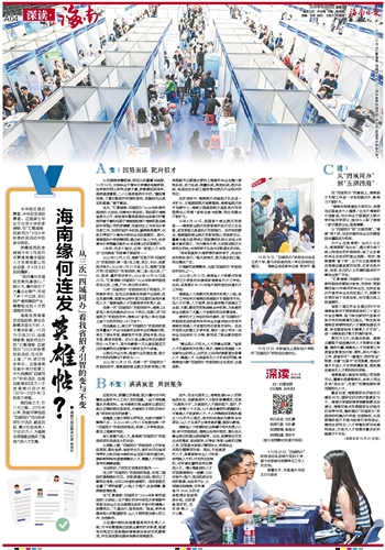 为什么会是海南?业内人士认为,海南果断“走出去”,通过举办线下线上相结合的校招活动,给了众多高校毕业生良好的就业选择。同时,海南值得“留下来”,这不仅仅是海南有自贸港优惠政策的加持,还有自身开放、包容、多元的人文环境和提供的干事创业宽广平台。