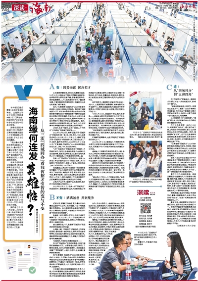 省委八届五次全会通过的《中共海南省委关于贯彻落实党的二十届三中全会精神、奋力争当新时代改革开放示范的实施意见》指出,“制定具有海南自贸港特色的人才集聚地建设方案,争创国家级吸引集聚人才平台”,进一步释放招才聚才的强烈信号。
