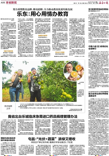 据悉,屯昌县近年来通过引进该项目,将现代农业与清洁能源生产相结合,实现土地资源的双重利用,促进能源产业可持续发展。“每天大约有20名技术工人在岗,加班加点抢修受损组件,争取在一个月内完工。”施工现场负责人李登攀介绍,该项目用地面积约1950亩,设有6个光伏区,截至目前,发电能力已达规划容量的40%,其中,4号光伏区完成投运,5号光伏区完成部分投运。此外,1号、2号及6号光伏区完成部分施工,3号光伏区正在开展前期工作。