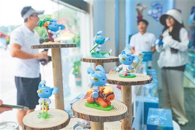 10月23日,位于三亚市鹿回头风景区的运动会特许商品门店,泡泡玛特联名出品“吉贝”潮玩手办已摆上柜台开售。