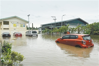 10月23日在菲律宾那牙拍摄的被洪水浸泡的汽车。新华社/法新