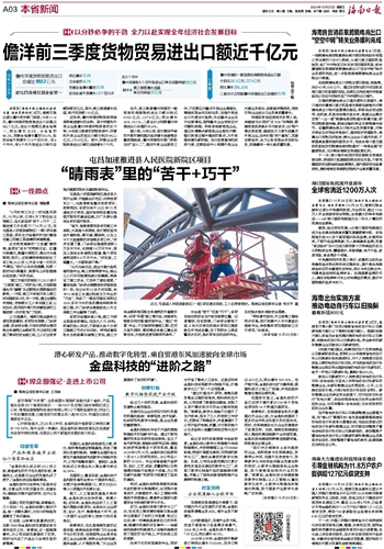 ■ 海南日报全媒体记者 王培琳坚守海南“大本营”,业务版图从海南扩至国内多个省份,产品销往全球86个国家和地区……自1997年在海口综合保税区成立以来,海南金盘智能科技股份有限公司(以下简称金盘科技)历经几十年的蓬勃发展,已蜕变成为年营业收入超66亿元、市值百亿级的高新技术企业。