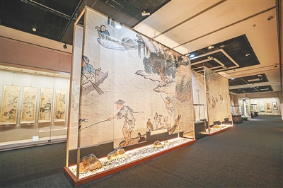 在本次展览中,有一幅国家一级文物——清代前期画家吕学的作品《渔乐图卷》。该画尺寸为纵30.6厘米、横642.3厘米,由乐嗣炳先生捐赠,现收藏于海南省民族博物馆。