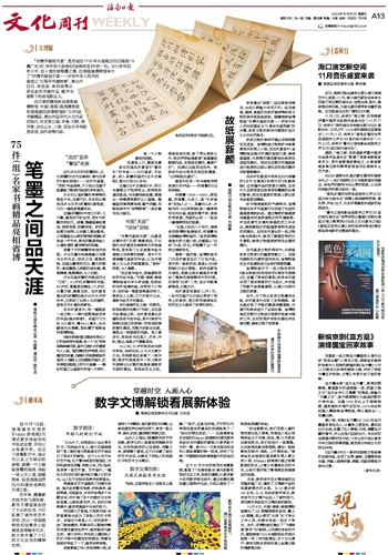 ■ 海南日报全媒体记者 刘晓惠 通讯员 薛冬凌“尽携书画到天涯”,是苏轼在1100年从海南北归过南海(今属广东)时,所作的七言绝句《徐熙杏花》中的一句。900多年后的今天,后人借东坡笔墨之意,在海南省博物馆举办了“尽携书画到天涯——庆祝中华人民共和国成立75周年书画特展”,展出齐白石、张岳崧、林则徐等众多名家的书画作品,赋予东坡笔下的诗词新含义。