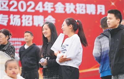 10月25日,在重庆市北碚区金秋招聘月专场招聘会活动现场,求职者在了解岗位信息。新华社发
