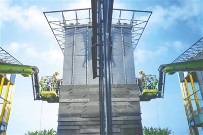 “项目开工至今都是超常规推进,目前已经完成投资10.8亿元。”项目现场负责人杨定才说,项目是去年8月拿到施工许可证,但去年3月起,项目地下部分就通过“以函代证”的方式分阶段施工。此外,该项目以石材、玻璃、铝材为主要建筑材料,装配式建筑超过50%,“像搭积木一样快,与传统的建筑相比,工期缩短至少5个月。”