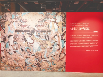 该展策展人介绍,整个画面以敦煌特有的朱红、石青、石绿为主色调来进行展示,以彰显中国传统的色彩美学。除了视觉体验,音乐还运用了经典的琵琶以及箜篌、鼓、琴等乐器。