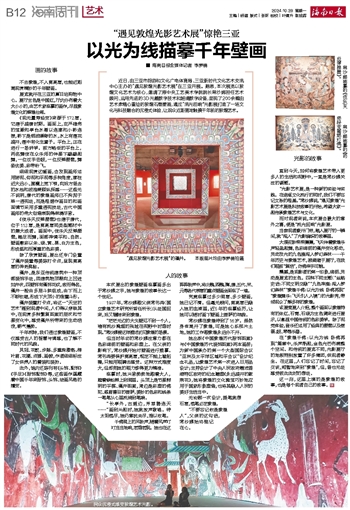 ■ 海南日报全媒体记者 李梦楠近日,由三亚市旅游和文化广电体育局、三亚新时代文化艺术交流中心主办的“遇见敦煌光影艺术展”在三亚开展。据悉,本次展览以敦煌文化艺术为核心,邀请了原中央工艺美术学院院长常沙娜担任艺术顾问,运用先进的3D光雕数字技术和超清数字设备,呈现了200余幅由艺术家精心重绘的敦煌石窟壁画,通过“流光回响”光影展打造了一场文化与科技融合的沉浸式体验,让观众近距离地触摸千年前的敦煌艺术。