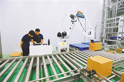 ■ 海南日报全媒体记者 李豌“再来一次!”10月28日,定安塔岭工业园内,海南达川食品有限公司(以下简称达川公司)热带特色产业扩产项目自动化生产线旁,该公司副总经理王山正和智能化搬运机械臂厂家技术人员沟通设备调试事宜。