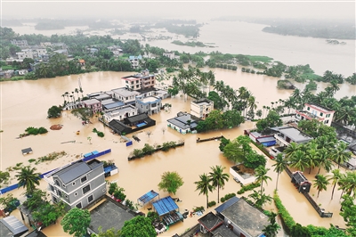 这是10月30日拍摄的琼海市博鳌镇留客村。受连日大范围强降水天气影响,琼海市万泉河流域多个沿河村庄被淹。海南省防灾减灾救灾委员会对琼海市启动防汛防风Ⅰ级应急响应,当地相关部门对受灾地区群众进行安置转移。新华社记者 张丽芸 摄